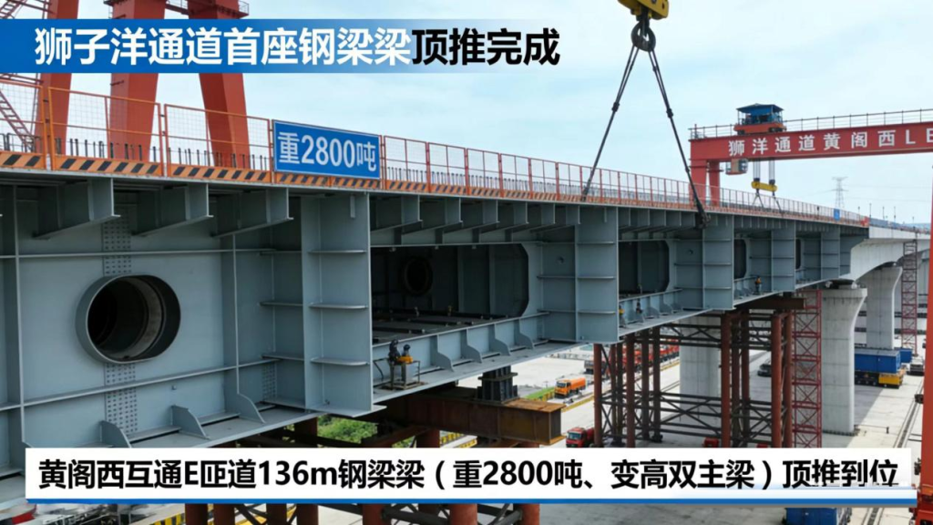 На развязке «Хуанге-Си» завершено установку методом проталкивания 136-метровой стальной ферменной балки (весом 2800 тонн, с переменной высотой и двумя основными фермами) на эстакаде E; это первая такая конструкция на всей трассе.
